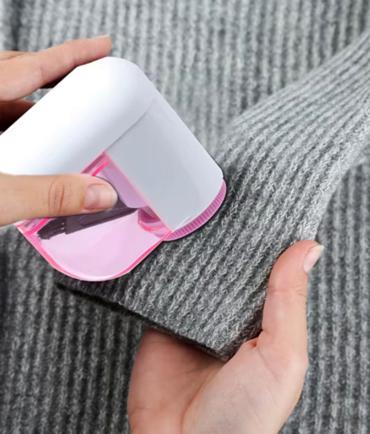 Su diseño compacto y ligero permite usarlo cómodamente en suéteres, abrigos, pantalones, mantas, sofás y más. Gracias a su cuchilla interna y malla protectora, corta las pelusas sin dañar la tela, mientras el depósito transparente recoge todos los residuos para una limpieza rápida.